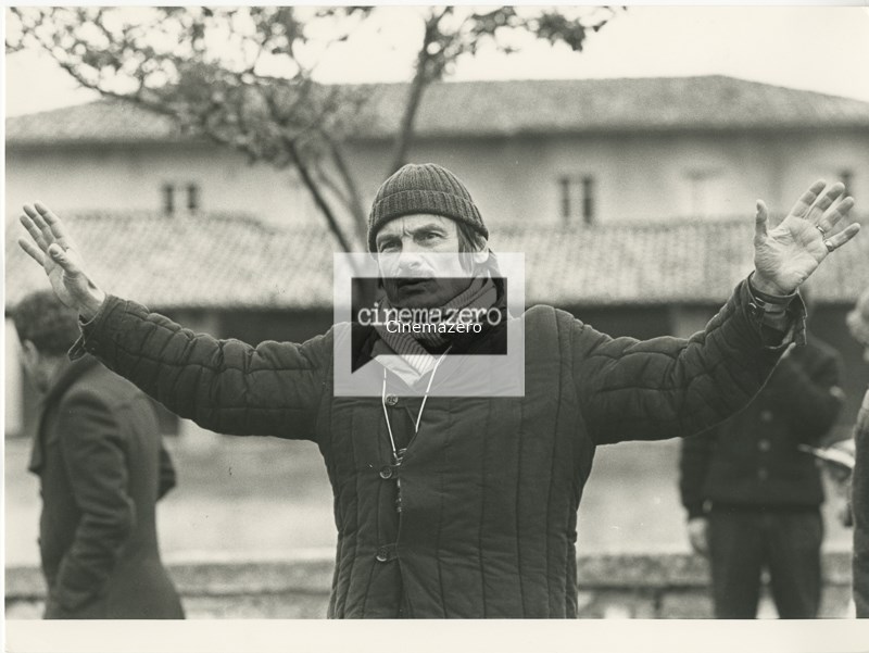 Andrei Tarkovskij dà indicazioni sul set, mezza figura, foto di set