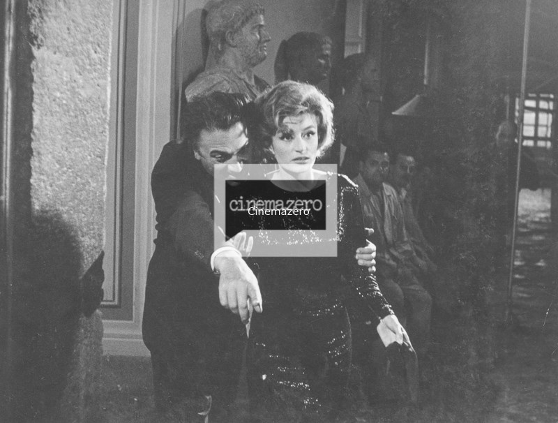 Federico Fellini dà indicazioni sul set a Anouk Aimée, mezza figura, foto di set