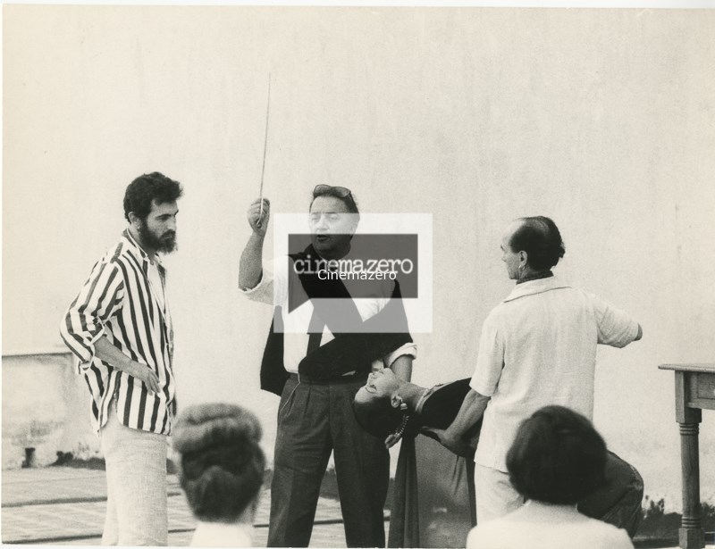 Federico Fellini dà indicazioni sul set, piano americano, foto di set
