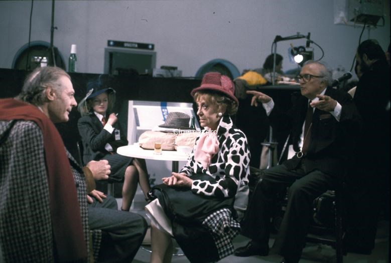 Il regista Federico Fellini ritratto sul set mentre è intento a dirigere una...