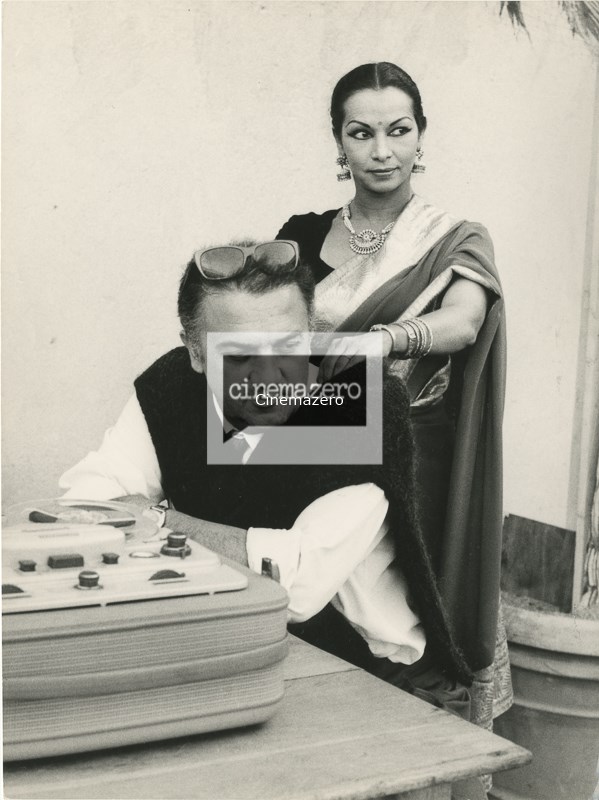 Federico Fellini e Asoka Rubener , mezza figura, foto di set