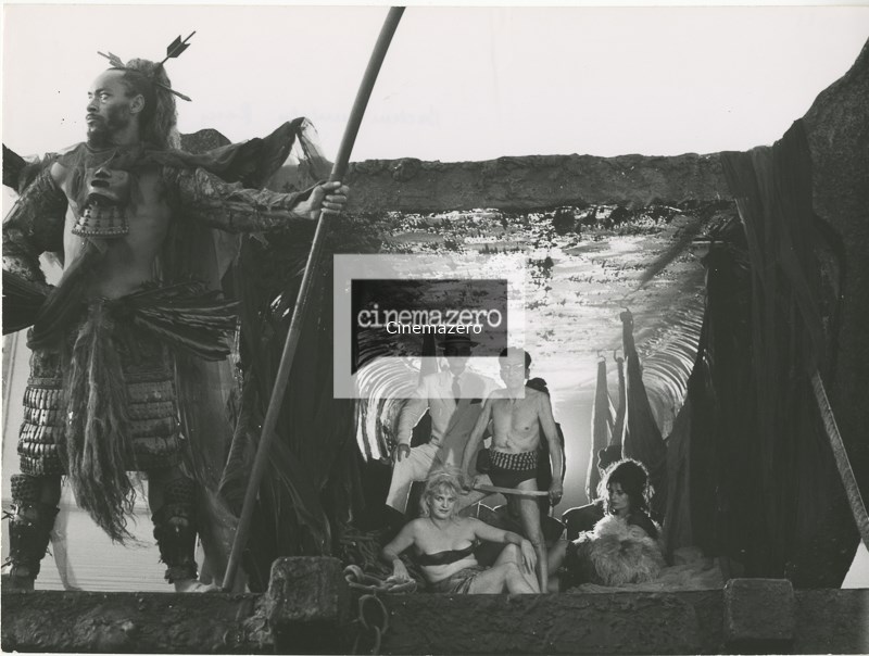 Gruppo di attori non identificati sul set, camo lungo, foto di scena