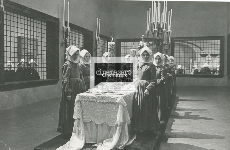 Gruppo di attrici non identificate, figura intera, foto di scena