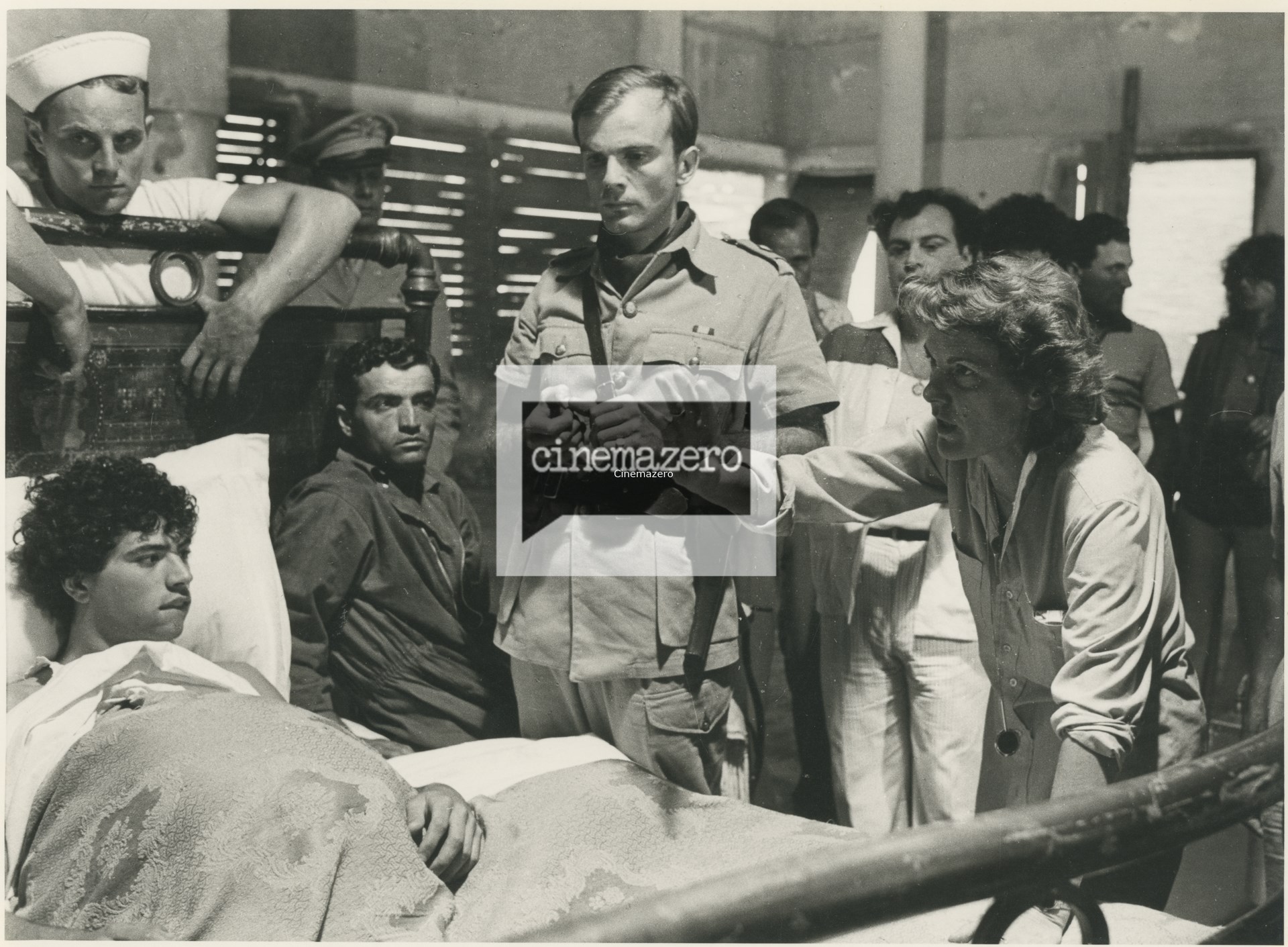 Liliana Cavani dà indicazioni sul set ad un gruppo di attori non identificati,...