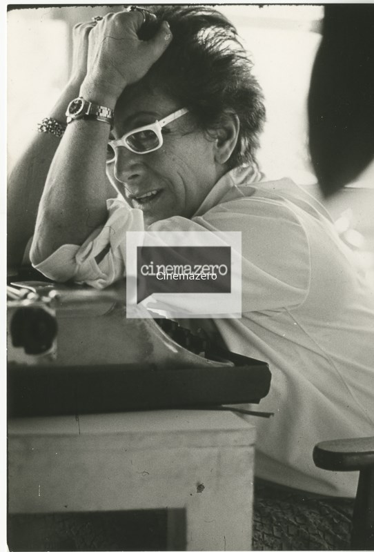 Lina Wertmüller con le mani tra i capelli, mezza figura, ritratto