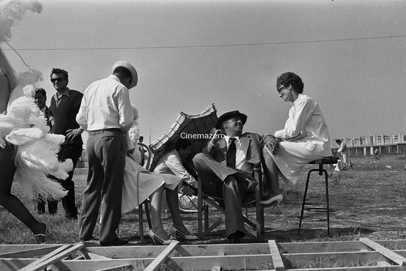 Alcuni membri della troupe, tra i quali il regista Federico Fellini e le attrici Anouk Aimée e Sandra Milo, interpreti rispettivamente del ruolo di Luisa Anselmi e di quello di Carla, ritratti sul set durante una pausa.