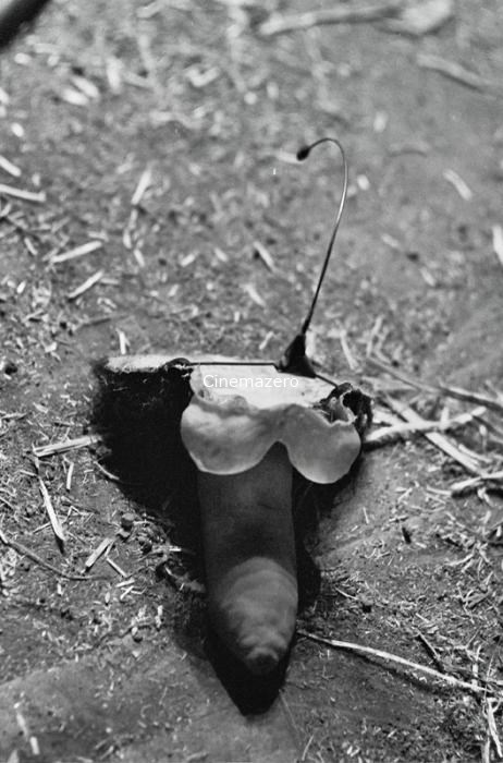 Un pene posticcio giace abbandonato a terra.
