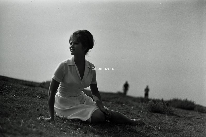 L'attrice Claudia Cardinale, interprete del ruolo di Claudia, ritratta mentre siede sorridente sul prato.