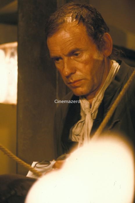L'attore Jean-Louis Trintignant, interprete del ruolo del Vice Procuratore Sauce, ritratto sul set mentre, il costume di scena indosso, attende l'inizio delle riprese.