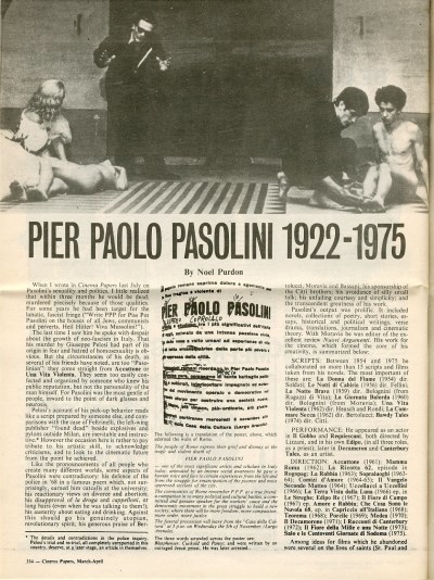 Indicazioni di pubblicazione: "Cinema Papers" Marc-April, 1976